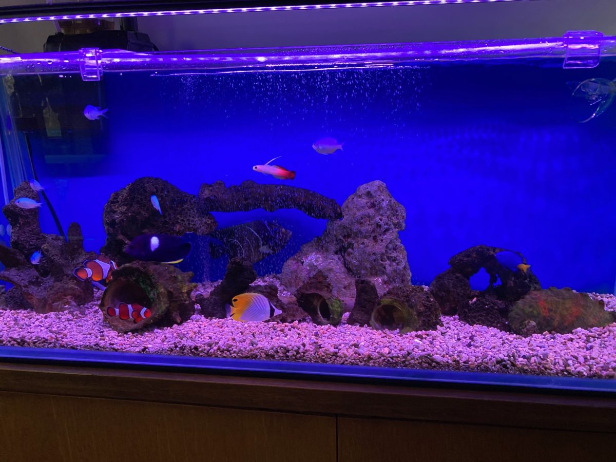 又水と魚を見ながら心を穏やかに過ごしてもらうため淡水魚、熱帯魚、レッドメダカも参入!